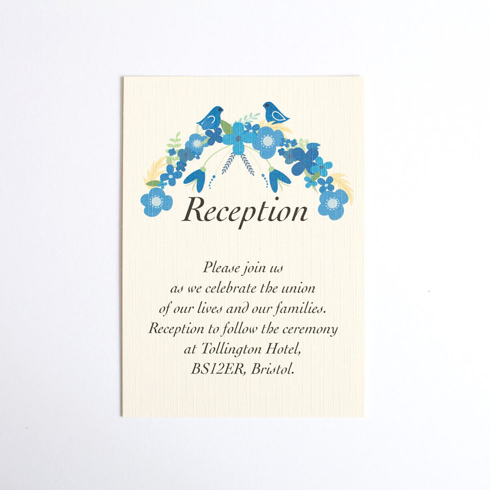 30 Personalised Reception Cards for Blue Bird Wedding Invitations