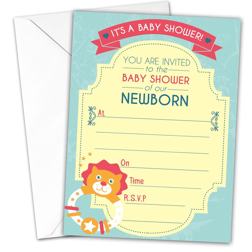 Blue&Yellow Premium Thick Pack of 8 Glossy Baby Shower Invitation Cards