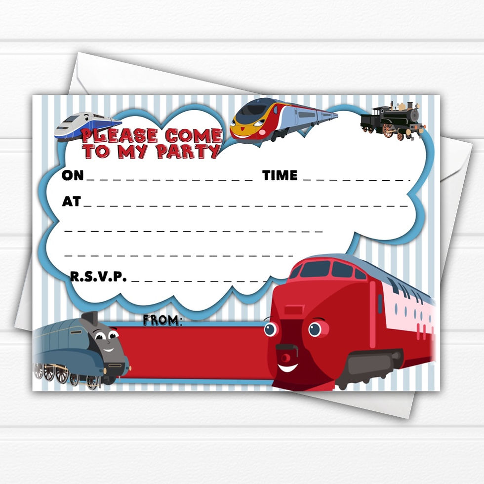 Pack of 20 Glossy Happy Trains Birthday Party Invitations Cards
