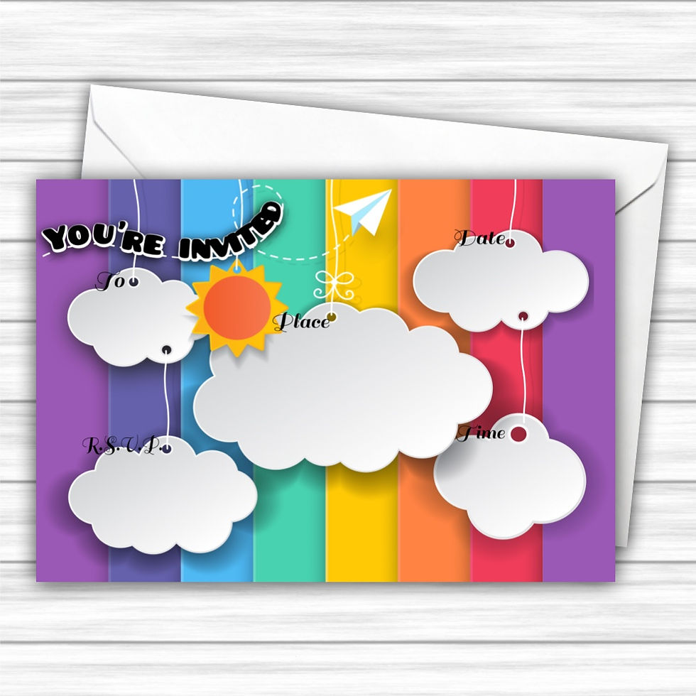 Pack of 20 Rainbow Clouds Glossy Birthday Party Invitations Cards